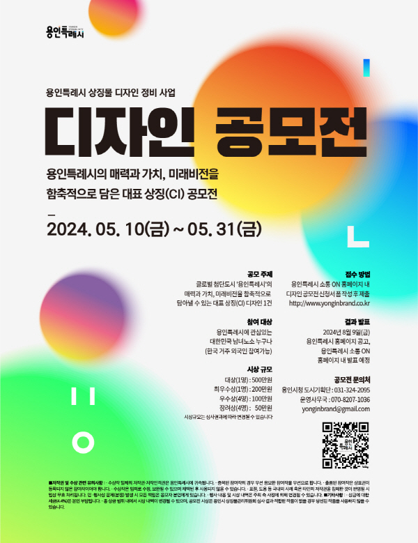°ø¸ð ºÐ¾ß´Â ¿ëÀÎÆ¯·Ê½ÃÀÇ ¹Ì·¡¿Í Á¤Ã¼¼ºÀ» ´ãÀº ÅëÇÕ µµ½Ãºê·£µå µðÀÚÀÎÀ¸·Î ´©±¸³ª ÀÚÀ¯·Ó°Ô ÀÀ¸ðÇÒ ¼ö ÀÖ´Ù. 5¿ù 10ÀϺÎÅÍ 5¿ù 31ÀϱîÁö ¿ëÀνÃû ´©¸®Áý(www.yongin.go.kr)°ú ¿ëÀνà µµ½Ãºê·£µå ¼ÒÅë¿Â ´©¸®Áý(www.yongin.go.kr)¿¡ µðÀÚÀÎ Á¦¾È¼­ µîÀ» ÀÛ¼ºÇØ ÃâǰÇÏ¸é µÈ´Ù.