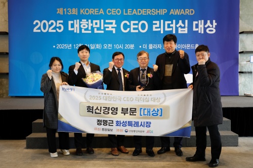 Á¤¸í±Ù ȼºÆ¯·Ê½ÃÀåÀÌ 21ÀÏ ¡®2025 ´ëÇѹα¹ CEO ¸®´õ½Ê ´ë»ó¡¯¿¡¼ Çõ½Å°æ¿µ ºÎ¹® ´ë»óÀ» ¼ö»óÇß´Ù.
