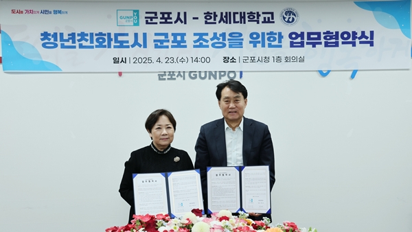 ±ºÆ÷½Ã(½ÃÀå ÇÏÀºÈ£)´Â 23ÀÏ ÇѼ¼´ë(ÃÑÀå ¹éÀÎÀÚ)¿Í ¡®Ã»³âģȭµµ½Ã Á¶¼º¡¯À» À§ÇÑ ¾÷¹«Çù¾àÀ» ü°áÇß´Ù.