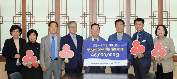 »ç´Ü¹ýÀÎ ´ëÇѳëÀÎȸ ÆòÅýÃÁöȸ(ÁöȸÀå ÀÌÀÍÀç)´Â Áö³ 4¿ù 29ÀÏ ¿µ³²Áö¿ª »êºÒ ÇÇÇØ Áö¿øÀ» À§ÇØ ¼º±Ý 4,600¸¸¿øÀ» °æ±â »çȸº¹Áö°øµ¿¸ð±Ýȸ µî¿¡ ±âºÎÇϸç, µû¶æÇÑ ³ª´®ÀÇ °¡Ä¡¸¦ ½ÇÇöÇß´Ù.