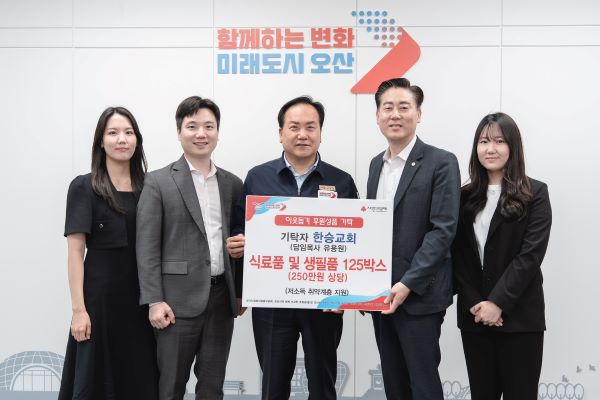 ¿À»ê½Ã(½ÃÀå À̱ÇÀç)´Â 25ÀÏ Çѽ±³È¸(´ãÀÓ¸ñ»ç À¯¿ë¿ø)¿¡¼­ Àú¼Òµæ Ãë¾à°èÃþ Áö¿øÀ» À§ÇÑ ½Ä·áǰ ¹× »ýȰ¿ëǰ ŰƮ 125¹Ú½º(250¸¸¿ø »ó´ç)¸¦ ±âŹÇß´Ù°í ¹àÇû´Ù.