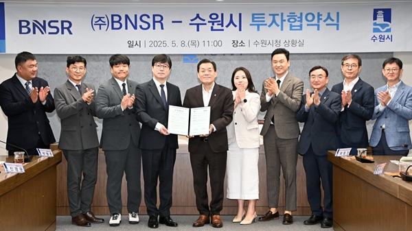 ¼ö¿ø½Ã¿Í ¢ßBNSRÀº 8ÀÏ ½Ãû »óȲ½Ç¿¡¼ ÅõÀÚ Çù¾àÀ» ü°áÇϰí, Çù·ÂÀ» ¾à¼ÓÇß´Ù. Çù¾à½Ä¿¡´Â ÀÌÀçÁØ ¼ö¿ø½ÃÀå, ¢ßBNSR ÃÖ°æÈÆ ´ëÇ¥, ¹ÚÇüÁÖ ºÎ´ëÇ¥ µîÀÌ Âü¼®Çß´Ù.