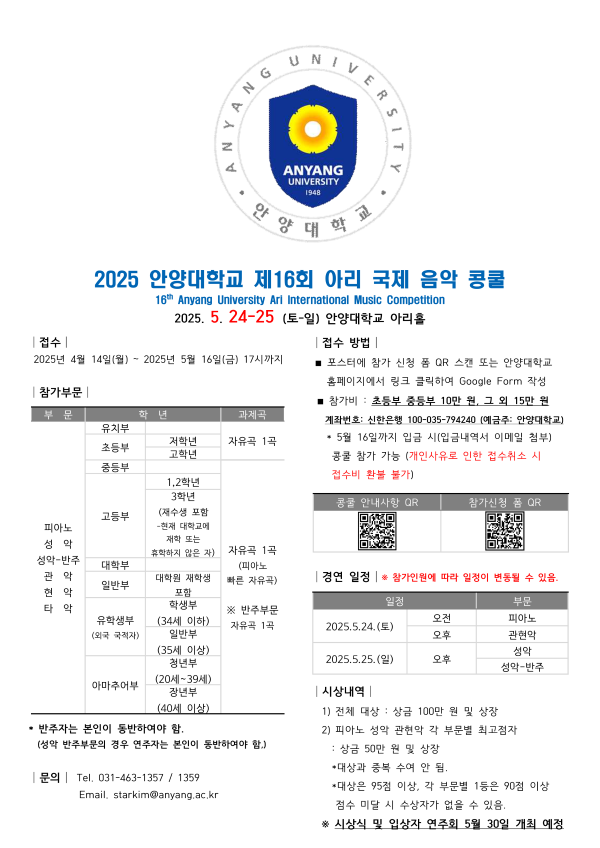 2025 ¾È¾ç´ëÇб³ Á¦16ȸ ¾Æ¸® ±¹Á¦ À½¾Ç ÄáÄð Æ÷½ºÅÍ
