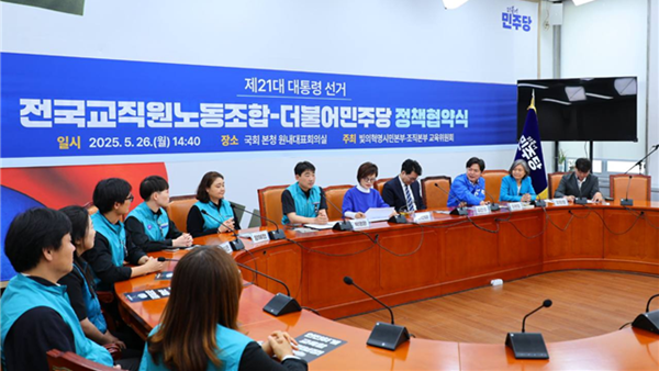 Çù¾à½Ä¿¡ ¾Õ¼ Àλ縻¿¡ ³ª¼± Àü±³Á¶ ¹Ú¿µÈ¯ À§¿øÀåÀº ¡°´õºÒ¾î¹ÎÁÖ´ç°ú ±³À°ÀÇÁ¦¿Í ±³»çµéÀÇ »îÀÇ ¹®Á¦¸¦ ´Ù·ê Á¤Ã¥Çù¾àÀ» ¸ÎÀ» ¼ö ÀÖ¾î ´ÙÇࡱÀ̶ó¸ç ¡°¸Å³â ±³»çµéÀÇ ¾ï¿ïÇÑ Á×À½ÀÌ À̾îÁö´Â »óȲÀ» ¹Ù²ÙÁö ¸øÇÑ´Ù¸é, ¾î¶² ±³À°Á¤Ã¥µµ ½ÇÇöµÉ ¼ö ¾øÀ» °Í¡±À̶ó°í ¸»Çß´Ù.