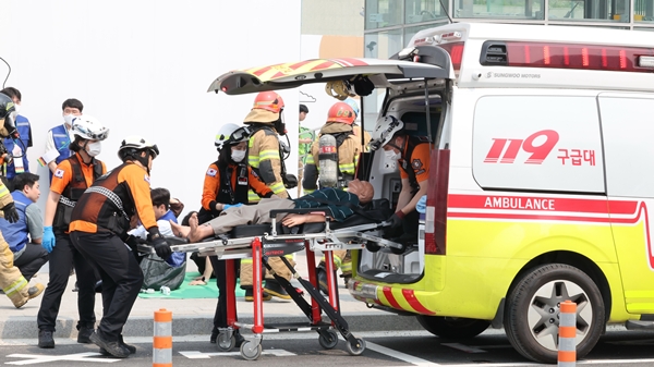 ÇöÀå ÈÆ·ÃÀº µ¿Åº¿ª¿¡¼ Á¤±¸¿ø Á¦1ºÎ½ÃÀå ÁÖÀç·Î ÁøÇàµÆ´Ù. °í¼Óöµµ Ãßµ¹ ¹× º¹ÇÕÀç³(¶¥²¨Áü) ¹ß»ý¿¡ ´ëºñÇØ 5ºÐ À̳» »óȲ ÀüÆÄ ¹× Ãʱâ ÀÎ¸í±¸Á¶ ÅõÀÔÀ» ¸ñÇ¥·Î Ãʵ¿´ëÀÀ, Àç³ÇöÀå ÅëÇÕÁö¿øº»ºÎ ¿î¿µ, À¯°ü±â°ü °£ ¼ö½À¡¤º¹±¸ ÈÆ·Ã µîÀ» Áß½ÉÀ¸·Î ½ÇÀü ÈÆ·ÃÀ» ÁøÇàÇß´Ù.