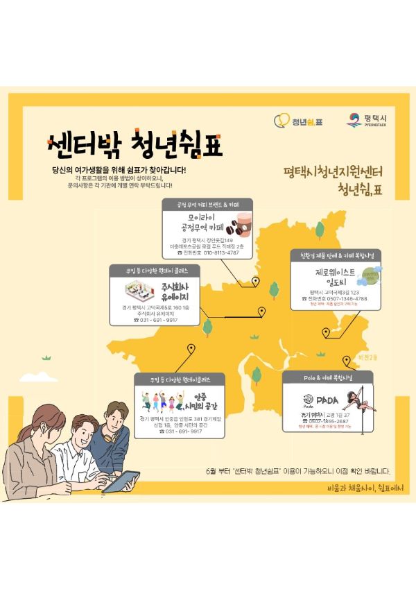 ¡®¼¾ÅÍ¹Û Ã»³â½°Ç¥¡¯´Â ÇöÀç ÆòÅÿª Àαٿ¡ Àִ û³â °ø°£ÀÎ ¡®Ã»³â½°,Ç¥¡¯ ¿Ü¿¡ Ãß°¡·Î À¯ÈÞ°ø°£À» È®º¸ÇØ Ã»³âµéÀÇ ÀÚÀ¯·Î¿î °øµ¿Ã¼ Ȱµ¿¿¡ ´ëÇÑ ÀÓÂ÷·á¿Í ÇÁ·Î±×·¥ »ç¾÷ºñ¸¦ Áö¿øÇÏ´Â »ç¾÷ÀÌ´Ù.
