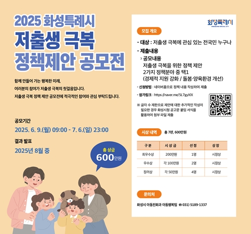 ȼºÆ¯·Ê½Ã(½ÃÀå Á¤¸í±Ù)°¡ ÀúÃâ»ý ¹®Á¦ ÇØ°áÀ» À§ÇÑ ½Ã¹ÎµéÀÇ Ã¢ÀÇÀûÀÎ ¾ÆÀ̵ð¾î¸¦ ¹ß±¼ÇϰíÀÚ ¡®2025³â ȼº½Ã ÀúÃâ»ý ±Øº¹ Á¤Ã¥ Á¦¾È °ø¸ðÀü¡¯À» °³ÃÖÇÑ´Ù.