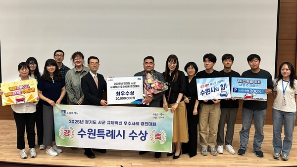 ¼ö¿ø½Ã(½ÃÀå ÀÌÀçÁØ)°¡ °æ±âµµ ÁÖ°ü ¡®2025³â °æ±âµµ ±ÔÁ¦Çõ½Å ¿ì¼ö»ç·Ê °æÁø´ëȸ¡¯¿¡¼ ÃÖ¿ì¼ö»óÀ» ¹Þ¾Ò´Ù.