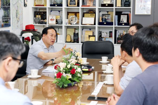 ÇÑÆí À̱ÇÀç ½ÃÀåÀº À̳¯ °£´ãȸ¿¡¼ ¿À»ê¡¤È¼ºÁö¿ª Çϼöó¸®Àå ½Å¼³ Çʿ伺¿¡ ´ëÇØ¼µµ ÇÇ·ÂÇß´Ù. ÀÌ ½ÃÀåÀº ¡°Çϼöó¸®Àå ½Å¼³ ¹®Á¦´Â ¿ì¸® ½Ã¹Î »Ó¸¸ ¾Æ´Ï¶ó ȼº½Ã¹ÎÀÇ »ýȰ°úµµ Á÷°áµÈ »ç¾È¡±À̶ó°í °Åµì °Á¶Çß´Ù.