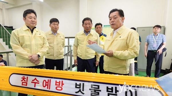 ÀÌÀçÁØ ¼ö¿ø½ÃÀåÀÌ 25ÀÏ Ä§¼ö Ãë¾àÁö¿ªÀÎ Æòµ¿ ¹è¼öÆßÇÁÀåÀ» ¹æ¹®ÇØ ¿î¿µÇöȲÀ» Á¡°ËÇß´Ù.