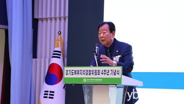°æ±âµµÀÇȸ ¾ÈÀüÇàÁ¤À§¿øÈ¸ ÀÓ»ó¿À À§¿øÀå(±¹¹ÎÀÇÈû µ¿µÎõ2)Àº 7¿ù 1ÀÏ ºÏºÎû»ç ÆòÈ­´©¸®È¦¿¡¼­ ¿­¸° ¡®°æ±âµµºÏºÎÀÚÄ¡°æÂûÀ§¿øÈ¸ Ãâ¹ü 4Áֳ⠱â³ä½Ä¡¯¿¡ Âü¼®ÇØ Ãà»ç¸¦ ÅëÇØ ÀÚÄ¡°æÂûÁ¦ÀÇ ¼º°ú¸¦ µÇ¤°í, ÁֹΠÁß½ÉÀÇ Ä¡¾Èü°è È®¸³À» À§ÇÑ Áö¼ÓÀûÀÎ Áö¿øÀ» ¾à¼ÓÇß´Ù.