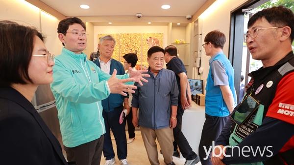 ÀÌ ½ÃÀåÀº ¡°½°ÅÍ ³»ºÎ¿¡ ½Ã¼³À» Àß ±¸ºñÇßÀ¸´Ï Æí¾ÈÇÏ°Ô ÀÌ¿ëÇϽðí, ÀÌ¿ëÇÏ½Ã¸é¼ ¹ÌÈíÇÑ Á¡ÀÌ ÀÖ´Ù¸é ¸»¾¸À» ÇØÁֽöó. ½Ã°¡ Àû±Ø °³¼±Çϵµ·Ï Çϰڴ١±°í ¸»Çß´Ù.
