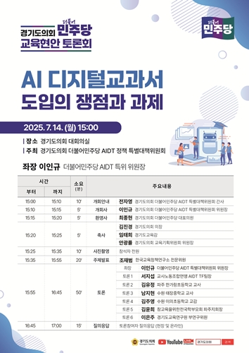 À̹ø Åä·Ðȸ´Â °æ±âµµÀÇȸ ´õºÒ¾î¹ÎÁÖ´ç Al µðÁöÅб³°ú¼ Á¤Ã¥ Ưº°´ëÃ¥À§¿øÈ¸(À§¿øÀå ÀÌÀαÔ, µ¿µÎõ1)°¡ ¸¶·ÃÇÑ °ÍÀ¸·Î »õ Á¤ºÎ Ãâ¹ü ÀÌÈÄ AI µðÁöÅб³°ú¼ Á¤Ã¥¿¡ ´ëÇÑ °³¼± ¹æ¾ÈÀ» ¸ð»öÇϱâ À§ÇÑ ÀÚ¸®´Ù.