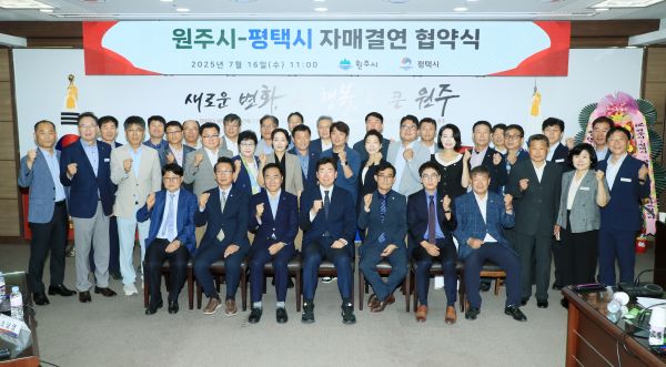 ¿ø°¼ö ¿øÁÖ½ÃÀåÀº ÀÌ¿¡ ¡°ÆòÅýÿÍÀÇ ÀڸŰῬÀº ÇàÁ¤ Çù·Â»Ó¸¸ ¾Æ´Ï¶ó ¹Î°£ ±³·ù±îÁö ¾Æ¿ì¸£´Â »ó»ý Àü·«¡±À̶ó¸ç ¡°µÎ Áö¿ªÀÌ °¡Áø ÀÚ¿øÀ» ¹ÙÅÁÀ¸·Î °øµ¿ ¹ßÀüÀÇ ½Ã³ÊÁö¸¦ âÃâÇϰڴ١±¶ó°í ¹àÇû´Ù.