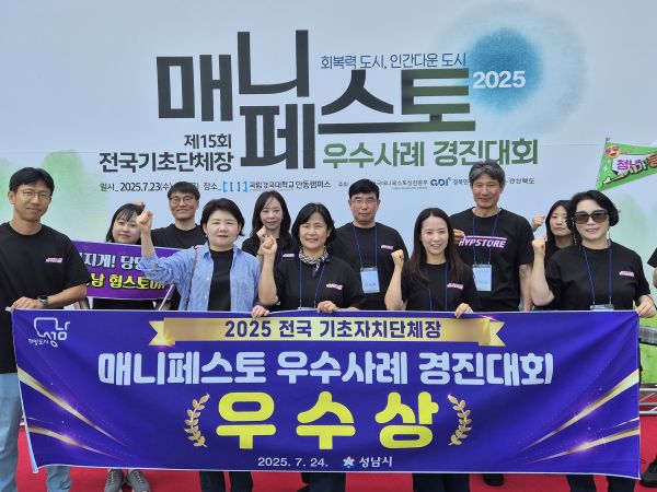 ¼º³²½Ã(½ÃÀå ½Å»óÁø)´Â Àü±¹ ±âÃÊÀÚÄ¡´ÜüÀå ¸Å´ÏÆä½ºÅä ¿ì¼ö»ç·Ê °æÁø´ëȸ¿¡¼­ ¼Ò»ó°øÀÎ ÀÌ»öÁ¡Æ÷ ¹ß±¼ Áö¿ø»ç¾÷ÀÎ Èü½ºÅä¾î »ç·Ê·Î °æÁ¦¡¤Áö¿ª»ê¾÷ ºÐ¾ß ¡®¿ì¼ö»ó¡¯À» ¹Þ¾Ò´Ù°í 25ÀÏ ¹àÇû´Ù.