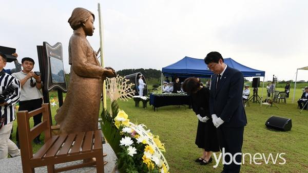 Á¤¸í±Ù ȼºÆ¯·Ê½ÃÀåÀº ¡°È¼ºÆ¯·Ê½Ã´Â Áö³ 10³â°£ ±¹³»¿Ü¿¡ ÆòÈÀÇ ¼Ò³à»óÀ» °Ç¸³Çϸç ÀϺ»±º À§¾ÈºÎ ÇÇÇØÀÚµéÀÇ Á¸¾ö°ú ¸í¿¹¸¦ ȸº¹ÇÏ´Â µ¥ ¾ÕÀå¼ ¿Ô´Ù¡±¸ç, ¡°µ¿Åº°ú ¸ÅÇ⸮»Ó¸¸ ¾Æ´Ï¶ó ÇØ¿Ü ÆòÈÀÇ ¼Ò³à»ó °Ç¸³À» Áö¿øÇؿ ½ÃÀÇ ³ë·ÂÀº ÀϺ»±ºÀÇ ÀüÀï ¼ºÆø·Â ¹®Á¦¸¦ ±¹Á¦»çȸ¿¡ ¾Ë¸®°í, ÆòÈ¿Í ÀαÇ, Á¤ÀÇÀÇ °¡Ä¡¸¦ ¼¼°è ½Ã¹Î°ú °øÀ¯ÇؿԴٴ Á¡¿¡¼ Å« Àǹ̰¡ ÀÖ´Ù¡±°í ¸»Çß´Ù.
