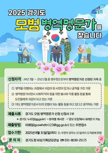 ¡®º´¿ª¸í¹®°¡¡¯´Â 3´ë(Á¶ºÎ․ºÎ․º»ÀÎ)¿¡ °ÉÃÄ º´¿ªÀǹ«¸¦ ¼º½ÇÈ÷ ÀÌÇàÇÑ °¡¹®À» ¶æÇϸç, º´¹«Ã»ÀÇ ¾ö°ÝÇÑ ½É»ç¸¦ ÅëÇØ ¼±Á¤µÈ´Ù. °æ±âµµ´Â ÀÌ °¡¿îµ¥ µµ¹Î¿¡°Ô ±Í°¨ÀÌ µÇ´Â »ç¿¬À» °¡Áø °¡¹®À» ¡®¸ð¹ü º´¿ª¸í¹®°¡¡¯·Î ¼±Á¤ÇØ, µµÁö»ç °¨»çÆÐ¿Í ÇÔ²² ¾Èº¸°ßÇÐ µî ´Ù¾çÇÑ ¿¹¿ì¸¦ Á¦°øÇÒ °èȹÀÌ´Ù.