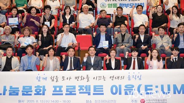 ¼ö¿ø½ÃÀÚ¿øºÀ»ç¼¾ÅͰ¡ ÃßÁøÇÏ´Â ¡®³ª´®¹®È ÇÁ·ÎÁ§Æ® ÀÌÀ½(E:UM)¡¯Àº °ø°ø¡¤¹Î°£¡¤½Ã¹ÎÀÌ ÈûÀ» ¸ð¾Æ Áý´Ü ÀÓÆÑÆ®(Colletive Impact) ¹æ½ÄÀ¸·Î µµ½ÃÀÇ º¯È¸¦ ¸¸µé¾î°¡´Â ¼ö¿øÇü ³ª´®¹®È ÇÁ·ÎÁ§Æ®´Ù. ¡®ÀÌÀ½(E:UM)¡¯Àº Empower(½Ã¹ÎÀÇ Èû), Unity(¿¬´ë¿Í Çù·Â), Movement(º¯ÈÀÇ ¿òÁ÷ÀÓ)ÀÇ ¾àÀÚ´Ù.