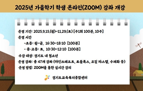 °æ±âµµ±³À°º¹ÁöÁ¾ÇÕ¼¾ÅÍ(°üÀå ÇǼºÁÖ)°¡ µµ³» û¼Ò³âÀ» ´ë»óÀ¸·Î ¡®2025³â Á¦4±â Çлý ¿Â¶óÀÎ(ZOOM) °Á¡¯¸¦ ¿î¿µÇÑ´Ù.