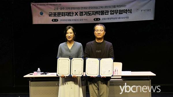 Çѱ¹µµÀÚÀç´Ü °æ±âµµÀÚ¹Ú¹°°ü°ú ±ºÆ÷¹®È­Àç´ÜÀÌ 20ÀÏ ±ºÆ÷¹®È­Àç´Ü Æò»ýÇнÀ¿ø¿¡¼­ ¡®±³À° ÄÜÅÙÃ÷ ±³·ù ¹× È«º¸¡¯¸¦ À§ÇÑ ¾÷¹«Çù¾àÀ» ü°áÇß´Ù.
