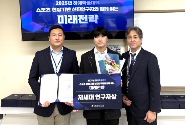 ¾È¾ç´ë ½ºÆ÷Ã÷ÀÀ¿ë»ê¾÷Çаú 2Çг⠹ڼ±¿ì Çлý(Áöµµ±³¼ö ÀÓÈ¿¼º)Àº 22ÀÏ Çѱ¹Ã¼À°´ëÇб³ üÀ°°úÇаü¿¡¼ ¿¸° ¡®2025³âµµ Çѱ¹½ºÆ÷Ã÷ÄÚĪÇÐȸ Çмú´ëȸ¡¯¿¡¼ ¿ì¼öÇÑ ÇöÀå ½Çõ¼º°ú Çй®Àû ޱ¸ ¿ª·®À» ÀÎÁ¤¹Þ¾Æ ¡®Â÷¼¼´ë ¿¬±¸ÀÚ»ó¡¯À» ¼ö»óÇß´Ù.