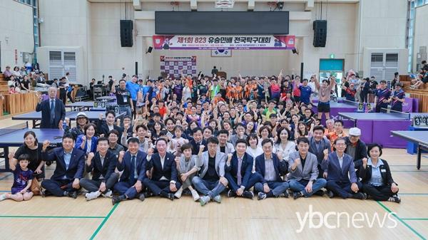 ´ëȸ ¸íĪÀÎ ¡®823¡¯Àº 2004³â ¾ÆÅ׳׿ø²ÇÈ¿¡¼ À¯½Â¹Î ȸÀåÀÌ ´ëÇѹα¹ Ź±¸ »ç»ó µÎ ¹øÂ° ±Ý¸Þ´ÞÀ» ȹµæÇÑ 8¿ù 23ÀÏÀ» ±â³äÇØ ºÙ¿©Á³´Ù. 20³âÀÌ Áö³ Áö±Ý ¿Ã¸²ÇÈÀÇ ¿µ±¤À» ´Ù½Ã ¶°¿Ã¸®¸ç Àü±¹ÀÇ »ýȰüÀ° µ¿È£ÀεéÀÌ ±ºÆ÷¿¡ ¸ð¿© ¿ÀüÀ» ÆîÃÆ´Ù.