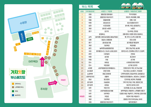Çà»ç¿¡´Â Áö¿ªÀÚȰ¼¾ÅÍ »ç¾÷´Ü 26°³¼Ò, ÀÚȰ±â¾÷ 8°³¼Ò°¡ Âü¿©ÇÑ´Ù. Çà»çÀå¿¡´Â ¾à 30°³ÀÇ ÆÇ¸Å ¹× üÇèºÎ½º¸¦ ¼³Ä¡ÇØ ¿î¿µÇÒ ¿¹Á¤ÀÌ´Ù. ÀÌ Áß ¾ß¿Ü¿¡ Á¶¼ºµÇ´Â ÆÇ¸ÅÁ¸¿¡¼´Â ¸Ô°Å¸®, »ýȰ¿ëǰ, ¼ö°ø¿¹Ç° µî ´Ù¾çÇÑ ÀÚȰ»ý»êǰÀ» Àü½Ã¡¤ÆÇ¸ÅÇϸç, ½Ç³» ¾î¿ï¸²È¦¿¡´Â üÇèÁ¸À» ¸¶·ÃÇØ °¡Á· ´ÜÀ§ ¹æ¹®°´µéÀ» À§ÇÑ Ã¼ÇèÇÁ·Î±×·¥À» ¿î¿µÇÑ´Ù.
