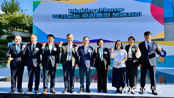 Á¤À±°æ ºÎÀÇÀå(´õºÒ¾î¹ÎÁÖ´ç, ±ºÆ÷1)Àº À̳¯ Ãà»ç¿¡¼­ ¡°¿À´Ã ÀÌ ÀÚ¸®´Â ÆòÈ­¿Í »ó»ýÀÇ °¡Ä¡¸¦ È®ÀÎÇÏ´Â ¶æ±íÀº À塱À̶ó¸ç, ¡°°æ±âµµ°¡ °ð ¿ì¸®ÀÇ ÁýÀ̶ó´Â ¼Ò¼Ó°¨°ú ÀںνÉÀ» ¸ðµç µµ¹ÎÀÌ ÇÔ²² ´À³¢±â¸¦ ¹Ù¶õ´Ù¡±°í ¹àÇû´Ù. ÀÌ¾î ¡°À̹ø ÃàÁ¦ÀÇ ½½·Î°ÇÀÎ ¡®Making HOME¡¯Àº ´Ü¼øÇÑ ±¸È£°¡ ¾Æ´Ï¶ó, ÀÌ¿ô°ú ³ª´©°í ÀÌÇØÇÏ¸ç ½Å·ÚÇÏ´Â »çȸÀû ÅÍÀüÀ» ¸¸µé¾î°¡°Ú´Ù´Â ¿ì¸®ÀÇ ¾à¼ÓÀÌÀÚ ½ÇõÀÇ ´ÙÁü¡±À̶ó°í µ¡ºÙ¿´´Ù.