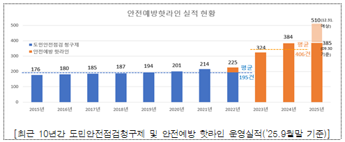 ½Åû¹æ¹ýÀÌ Àü¿ëÀüÈ(ÇÖ¶óÀÎ) µîÀ¸·Î ÀüȯµÇ°í ¾ÈÀüÁ¡°Ë°á°ú¿¡ ´ëÇÑ ¸¸Á·µµ°¡ ³ô¾ÆÁö¸é¼ ¾ÈÀüÁ¡°Ë ½Åû °Ç¼öµµ ¸Å³â Áõ°¡Çϰí ÀÖ´Ù. ¿ÃÇØ´Â 9¿ù¸» ±âÁØÀ¸·Î ÀÌ¹Ì Àü³âµµ Àüü½ÇÀû 384°ÇÀ» ÃʰúÇß´Ù.