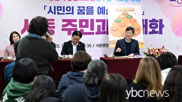 À̹α٠½ÃÀåÀÇ ½ÃÁ¤ ¿î¿µ°èȹ¿¡ ´ëÇÑ ¼³¸íÀ¸·Î ½ÃÀÛµÈ °£´ãȸ¿¡¼´Â ¡ã»çµ¿ Áö¿ª Çö¾È º¸°í ¡ãÁֹΠ°ÇÀÇ»çÇ× Ã»Ãë ¹× ´äº¯ ¡ã¡®Çö´ä¹ö½º¡¯¸¦ ÅëÇÑ ÇöÀå ¹æ¹® µîÀÌ ÁøÇàµÆ´Ù.