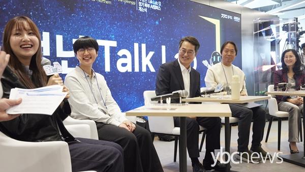 2ºÎ Çà»ç·Î ¿¸° AI û³â ÅäÅ© ·¦(Talk Lab)¿¡¼´Â °æ±âµµ°¡ ÃßÁø ÁßÀÎ AIÀü¹®Àη ¾ç¼º°úÁ¤ ±³À°»ý, AI¸®ÅÍ·¯½Ã ±³À°»ý, AI µµ¹Î°»ç µî û³â ±³À°»ýµéÀÌ ±èµ¿¿¬ Áö»ç¿Í AI ÇнÀ °æÇè°ú Áø·Î ºñÀüÀ» ÁÖÁ¦·Î ´ëȸ¦ ³ª´³´Ù.