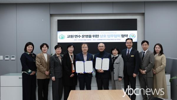 °¿øÆ¯º°ÀÚÄ¡µµ±³À°Ã»±³À°¿¬¼ö¿ø¿¡¼ ÁøÇàµÈ À̹ø ¾÷¹«Çù¾à¿¡´Â ½ÉÇѼö °æ±âµµ±³À°Ã»³²ºÎ¿¬¼ö¿øÀå°ú ¹Î¼· °¿øÆ¯º°ÀÚÄ¡µµ±³À°Ã»±³À°¿¬¼ö¿øÀåÀÌ Âü¼®ÇØ ÀÎÀû¡¤¹°Àû ÀÚ¿øÀ» °øÀ¯ÇÏ¿© ¿¬¼ö ±âȹ·Â°ú ½ÇÇà·ÂÀ» ³ôÀÌ´Â µ¥ °øµ¿ÀÇ ³ë·ÂÀ» ±â¿ïÀÏ °ÍÀ» ¾à¼ÓÇß´Ù.