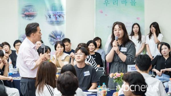 ÀÌÀçÁØ ½ÃÀåÀÌ ½ÃÁ¤ °èȹ, °¢ µ¿ÀÇ ¸¶À» °èȹÀ» °£°áÇÏ°Ô ¼Ò°³ÇÑ ÈÄ »çȸÀÚ°¡ µÅ Áֹε鿡°Ô ´Ù°¡°¡ ´ëÈ­¸¦ ³ª´«´Ù. ÁֹεéÀº ÀÌÀçÁØ ½ÃÀå¿¡°Ô Áú¹®µµ Çϰí, Á¦¾Èµµ ÇÑ´Ù.