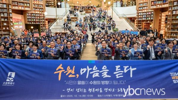 ÀÌÀçÁØ ¼ö¿ø½ÃÀåÀÌ ¸ðµç µ¿(44°³)À» ¹æ¹®ÇØ ½Ã¹ÎµéÀ» ¸¸³ª ½ÃÁ¤ °èȹÀ» ¼³¸íÇϰí, ´ëÈ­¸¦ ³ª´©´Â ¡®2025 »õºû¸¸³²- ¼ö¿ø, ¸¶À½À» µè´Ù¡¯°¡ ½Ã¹ÎµéÀÇ È£ÀÀÀ» ¾ò°í ÀÖ´Ù. 9¿ù 8ÀÏ ¸Å±³µ¿¿¡¼­ ½ÃÀÛÇÑ 2025 »õºû¸¸³²Àº 10¿ù 24ÀϱîÁö 23°³ µ¿¿¡¼­ ¿­¸®¸ç ¹ÝȯÁ¡À» µ¹¾Ò´Ù.
