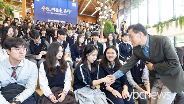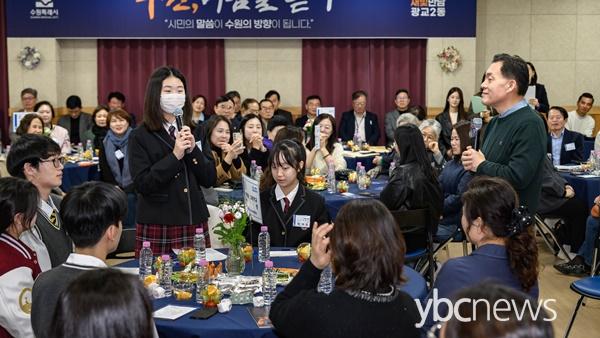 ÀÌÀçÁØ ¼ö¿ø½ÃÀåÀº Çлýµé¿¡°Ô °¡Àå ¸ÕÀú ¹ß¾ð±ÇÀ» ÁÖ¸ç ¡°¼ö¿ø½Ã¿¡ ¹Ù¶ó´Â Á¡, Á¦¾ÈÇÏ°í ½ÍÀº °ÍÀÌ ÀÖÀ¸¸é ¹«¾ùÀ̵ç À̾߱âÇØ ´Þ¶ó¡±°í ¸»Çß´Ù.