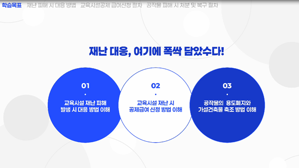 ÇÑÆí µµ±³À°Ã»Àº À̹ø ¿µ»óÀ» Æ÷ÇÔÇØ 11¿ù ÇöÀç±îÁö ¸ðµÎ 22ÆíÀÇ Çб³ ¾÷¹«¸Å´º¾ó µ¿¿µ»óÀ» Á¦ÀÛÇØ ¾È³»Çß´Ù. ¾ÕÀ¸·Îµµ ±³Á÷¿øÀÌ ¿µ»ó ¾÷¹«¸Å´º¾óÀ» Ȱ¿ëÇØ °ü·Ã ±ÔÁ¤°ú ÀýÂ÷¸¦ ºü¸£°Ô È®ÀÎÇϵµ·Ï µ½°í, ½±°Ô ¹®Á¦¸¦ ÇØ°áÇÒ ¼ö ÀÖµµ·Ï Áö¼ÓÀûÀ¸·Î Áö¿øÇÒ ¹æÄ§ÀÌ´Ù.