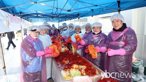 ¼ö¿øÆ¯·Ê½ÃÀÇȸ(ÀÇÀå ÀÌÀç½Ä)°¡ 1ÀÏ(¿ù) ¼ö¿ø½Ãû º°°ü ¾Õ ±¤Àå¿¡¼ ¿¬¸»À» ¸Â¾Æ ¾î·Á¿î ÀÌ¿ô¿¡°Ô µû¶æÇÑ ¿ÂÁ¤À» ³ª´©±â À§ÇÑ »ç¶ûÀÇ ±èÀ峪´® Çà»ç¸¦ ½Ç½ÃÇß´Ù.