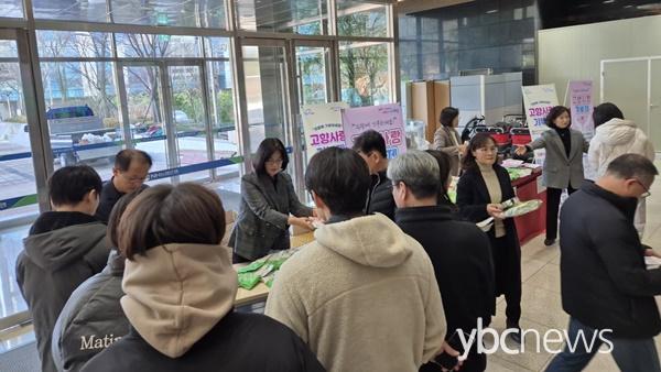 À̹ø È«º¸´Â Á¡½É½Ã°£¿¡ ¸ÂÃç ±Ù·ÎÀÚµéÀ» ´ë»óÀ¸·Î ¸®Çø´°ú È«º¸ ¹°Ç°À» ¹èºÎÇÏ´Â ¹æ½ÄÀ¸·Î ÀÌ·ïÁ³À¸¸ç, ÇöÀå¿¡¼ ±âºÎ¿¡ Âü¿©ÇÑ ±Ù·ÎÀڵ鿡°Ô´Â °¨»çÀÇ ¶æÀ» ´ãÀº Ãß°¡ È«º¸ ¹°Ç°À» ÁõÁ¤ÇØ Âü¿© ºÐÀ§±â¸¦ ³ô¿´´Ù.