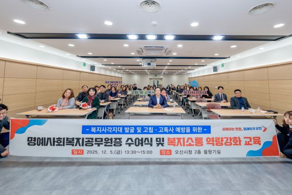 ¿À»ê½Ã(½ÃÀå À̱ÇÀç)´Â Áö³ 5ÀÏ Áö¿ª»çȸº¸ÀåÇùÀÇü À§¿ø ¹× ¸í¿¹»çȸº¹Áö°ø¹«¿ø µî 80¿© ¸íÀÌ Âü¼®ÇÑ °¡¿îµ¥ ¡®¸í¿¹»çȸº¹Áö°ø¹«¿øÁõ ¼ö¿©½Ä ¹× º¹Áö¼ÒÅë Æ¯°¡¯À» °³ÃÖÇß´Ù°í ¹àÇû´Ù. À̹ø Çà»ç´Â À§±âÀÌ¿ô ¹ß±¼ Ȱµ¿À» Ȱ¼ºÈÇϰí, Áö¿ª ³» ¹Î¡¤°ü Çù·Â ±â¹ÝÀ» °ÈÇϱâ À§ÇØ ¸¶·ÃµÆ´Ù.