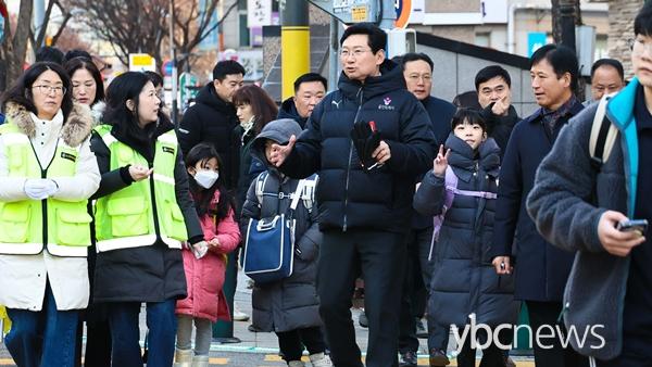 ÀÌ»óÀÏ ½ÃÀåÀº À̳¯ ¾ÆÄ§ ¼öÁö±¸ ´ëÁöÃÊ¿¡¼ ±³ÅëÁöµµ ºÀ»çȰµ¿ ÁßÀÎ ³ì»ö¾î¸Ó´Ïȸ¿Í Çкθðȸ ȸ¿ø µî 30¿© ¸íÀ» °Ý·ÁÇϰí, ¼Õ¿µ¼ø ±³Àå µî Çб³ °ü°èÀÚµé°ú ÇÔ²² ÅëÇзθ¦ »ìÆìº¸¸ç µµ·Î½Ã¼³¹° µîÀ» °³¼±ÇÒ °ÍÀ» Áö½ÃÇß´Ù.