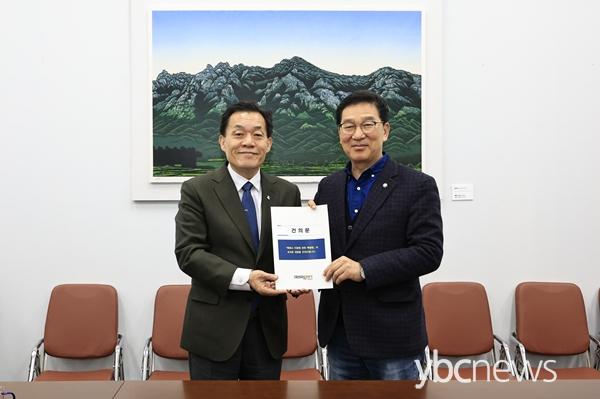 ÀÌÀçÁØ ¼ö¿ø½ÃÀåÀ» ºñ·ÔÇÑ 5°³ ½Ã Ư·Ê½ÃÀå(â¿ø½Ã´Â ÀÚÄ¡ÇàÁ¤±¹Àå)Àº 10ÀÏ ±¹È¸ ÇàÁ¤¾ÈÀüÀ§¿øÈ¸ À§¿øÀå½Ç¿¡¼ ½ÅÁ¤ÈÆ À§¿øÀå°ú °£´ãȸ¸¦ ¿°í, °ÇÀǹ®À» Àü´ÞÇß´Ù.