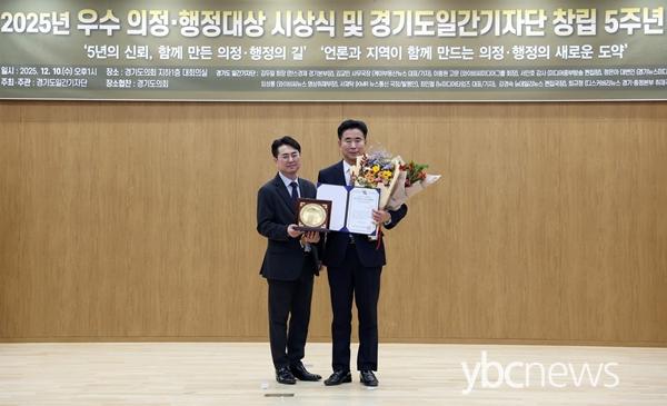 ¿À»ê½ÃÀÇȸ ¼º±æ¿ë ºÎÀÇÀå(´õºÒ¾î¹ÎÁÖ´ç, ´ë¿ø1¡¤2¡¤³²ÃÌ¡¤ÃÊÆòµ¿)ÀÌ 12¿ù 10ÀÏ °æ±âµµÀÇȸ ´ëȸÀǽǿ¡¼­ ¿­¸° 2025³â ¿ì¼ö ÀÇÁ¤ ÇàÁ¤´ë»ó ½Ã»ó½Ä¿¡¼­ ¡®ÇùÄ¡¡¤Ã¥ÀÓÀÇÁ¤ ¸®´õ½Ê ¸í¿¹´ë»ó¡¯À» ¼ö»óÇß´Ù. À̹ø »óÀº ÀÇȸ ¿î¿µ °úÁ¤¿¡¼­ ÇùÄ¡ ±â¹ÝÀÇ ¸®´õ½Ê°ú Ã¥ÀÓ ÀÖ´Â ÀÇÁ¤ ¹®È­¸¦ Á¤Âø½ÃŰ´Â µ¥ ±â¿©ÇÑ ÀÇȸ ÁöµµÀÚ¿¡°Ô ¼ö¿©µÇ´Â ¸í¿¹»óÀ¸·Î, ¼º ºÎÀÇÀåÀÇ ±ÕÇü °¨°¢ ÀÖ´Â ÀÇȸ ¿î¿µ öÇаú ½Ã¹Î Á᫐ ÀÇÁ¤ÀÌ ³ôÀº Æò°¡¸¦ ¹Þ¾Ò´Ù.