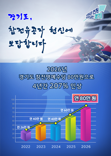 °æ±âµµ, ¿ÃÇØ ÂüÀü¸í¿¹¼ö´ç ¿¬ 80¸¸ ¿øÀ¸·Î Àλó. 4³â µ¿¾È 207% ´Ã¾î ¡Û °æ±âµµ, ÂüÀüÀ¯°øÀÚ ¿¹¿ì °È¡¦ 2026³â ÂüÀü¸í¿¹¼ö´ç 80¸¸ ¿øÀ¸·Î Àλó |