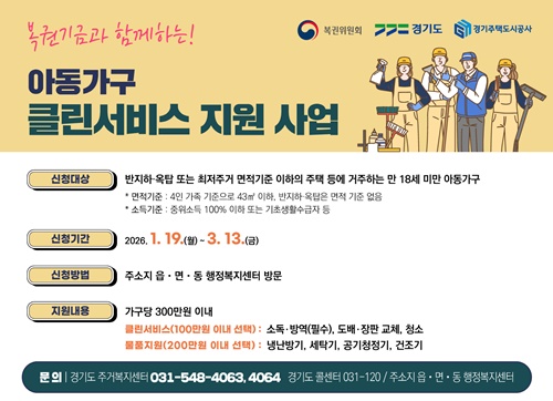 ÀǿսÃ(½ÃÀå ±è¼ºÁ¦)°¡ º¹±Ç±â±Ý°ú ÇÔ²²ÇÏ´Â °æ±âµµ ¡®¾Æµ¿°¡±¸ Ŭ¸°¼ºñ½º Áö¿ø»ç¾÷¡¯ÀÇ ½ÅûÀ» 1¿ù 19ÀϺÎÅÍ 3¿ù 13ÀϱîÁö ¹Þ´Â´Ù.