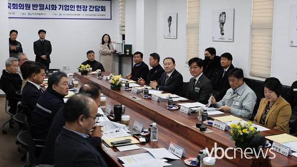 ¹ÚÇØÃ¶ ±¹È¸ÀÇ¿ø ¿ª½Ã ¡°¹Ý¿ù½Ãȱ¹°¡»ê¾÷´ÜÁö´Â ´ëÇѹα¹ Á¦Á¶¾÷ÀÇ ½ÉÀ塱À̶ó¸ç, ¡°ÇöÀå¿¡¼ Á¦±âµÈ °úÁ¦µéÀÌ ±¹È¸¿Í Á¤ºÎ Á¤Ã¥À¸·Î À̾îÁú ¼ö ÀÖµµ·Ï Àû±Ø µÞ¹ÞħÇϰڴ١±°í ¸»Çß´Ù. À̹ø °£´ãȸ¿¡´Â ÀÔÁÖ±â¾÷ °ü°èÀÚµé°ú »ê¾÷´ÜÁö °ü°èÀÚµéÀÌ ÇÔ²² Âü¼®ÇØ, ·Îº¿ ±¸Ãà È®´ë, AI ±â¹Ý Á¦Á¶Çõ½Å, R&D ÅõÀÚ ¿¬°è, ÇöÀå ±ÔÁ¦ °³¼± µî ½ÇÁúÀûÀÎ Á¤Ã¥ °úÁ¦¿¡ ´ëÇØ ½Éµµ ÀÖ´Â ³íÀǰ¡ ÀÌ·ïÁ³´Ù.