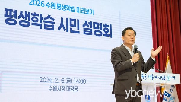 ¼ö¿ø½Ã´Â 6ÀÏ ½Ãû ´ë°´ç¿¡¼ ¡®2026 ¼ö¿ø½Ã Æò»ýÇнÀ ½Ã¹Î ¼³¸íȸ¡¯¸¦ ¿°í, ¿ÃÇØ »õ·Ó°Ô µ¿ Æò»ýÇнÀ¼¾ÅÍ »ç¾÷¿¡ Âü¿©ÇÏ´Â 34°³ µ¿¿¡ ÇöÆÇÀ» Àü´ÞÇß´Ù.