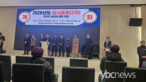 ºñ»êÃʱ³ÁÖº¯Áö±¸ ÁÖÅÃÀç°³¹ßÁ¤ºñ»ç¾÷Á¶ÇÕ(ÆòÃÌ¿¤ÇÁ¶ó¿ìµå)Àº Áö³­ 2¿ù 6ÀÏ ¿ÀÈÄ 2½Ã, »ï¿øÇÁ¶óÀÚÈ£ÅÚ¿¡¼­ ÀÓ¿ø ¼±ÃâÃÑȸ¸¦ ¿­°í Á¶ÇÕÀå 1¸í°ú °¨»ç 1¸í, ÀÌ»ç 6¸íÀ» ¼±ÃâÇß´Ù. À̹ø ÃÑȸ´Â Àü Á¶ÇÕÀå ÇØÀÓ ÀÌÈÄ Ã³À½ Ä¡·¯Áø °ø½Ä Á¶ÇÕÀå ¼±°Å·Î, Á¶ÇÕ ¿î¿µÀ» µÑ·¯½Ñ È¥¼±À» Á¤¸®Çϰí ÇâÈÄ »ç¾÷ ¸¶¹«¸® ¹æÇâÀ» °áÁ¤Áþ´Â ÀÚ¸®·Î ÁÖ¸ñÀ» ¹Þ¾Ò´Ù.