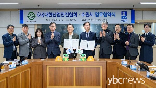 ÀÌÀçÁØ ¼ö¿ø½ÃÀåÀº ¡°¿À´Ã Çù¾àÀ» °è±â·Î ¡®»ê¾÷ ÀçÇØ ¾ø´Â ´ëÇѹα¹¡¯À» ¸¸µå´Â µ¥ ¼ö¿ø½Ã°¡ ¼±µµÀûÀÎ ¿ªÇÒÀ» ÇÒ ¼ö ÀÖÀ» °Í¡±À̶ó¸ç ¡°´ëÇÑ»ê¾÷¾ÈÀüÇùȸ¿Í ÈûÀ» ¸ð¾Æ ¾ÈÀüÇÑ µµ½Ã¸¦ ¸¸µé°í, ½Ã¹ÎÀÇ ¾ÈÀüÀ» Áö۱â À§ÇØ ³ë·ÂÇϰڴ١±°í ¸»Çß´Ù.