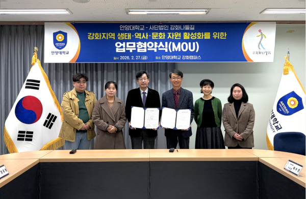 ¾È¾ç´ëÇб³(ÃÑÀå À層¼ö)´Â 27ÀÏ °ÈÄ·ÆÛ½º¿¡¼ »ç´Ü¹ýÀÎ °È³ªµé±æ°ú Áö¿ª»çȸ »ýÅ¡¤¿ª»ç¡¤¹®È ÀÚ¿øÀ» ±â¹ÝÀ¸·Î ÇÑ »óÈ£ Çù·Â °È¸¦ À§ÇØ ¾÷¹«Çù¾à(MOU)À» ü°áÇß´Ù.