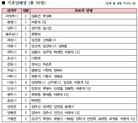 Á¦9ȸ Áö¹æ¼±°Å ±âÃÊ´ÜüÀå ±¹¹ÎÀÇÈû Á¢¼ö °á°ú